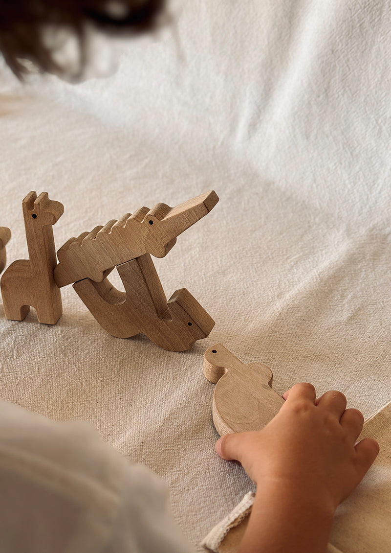 Une tortue, un crocodile, un cheval, une girafe, un dromadaire, Un âne, un mouton, un cheval arabe, un éléphant et un chameau. ces 10 petits animaux en bois de noyer et fabriqués dans nos ateliers à Marrakech, mesurent environ 10 cm et sont de jolis objets pour une chambre d'enfant. Ils sont vendus avec leur pochon pour les transporter en vacances.
