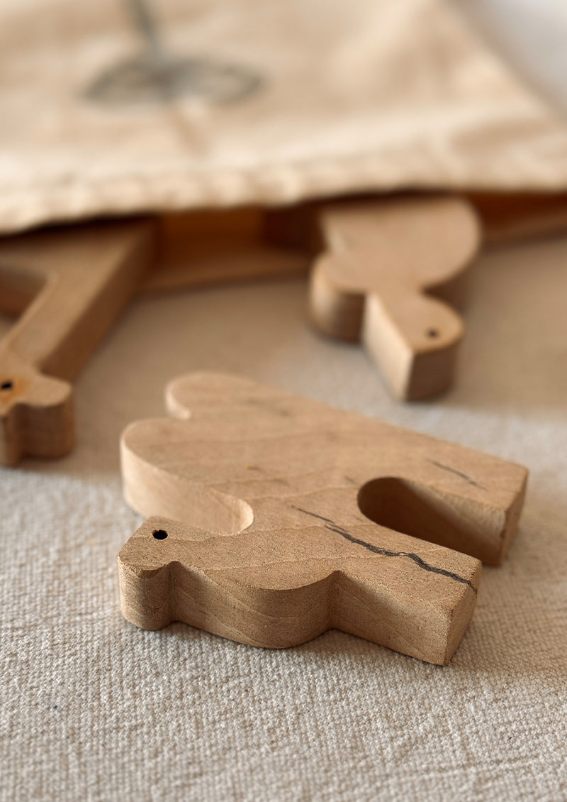 Une tortue, un crocodile, un cheval, une girafe et un dromadaire. ces 5 petits animaux en bois de noyer et fabriqués dans nos ateliers à marrakech, mesurent environ 10 cm et sont de jolis objets pour une chambre d'enfant. Ils sont vendus avec leur pochon pour les transporter en vacances.